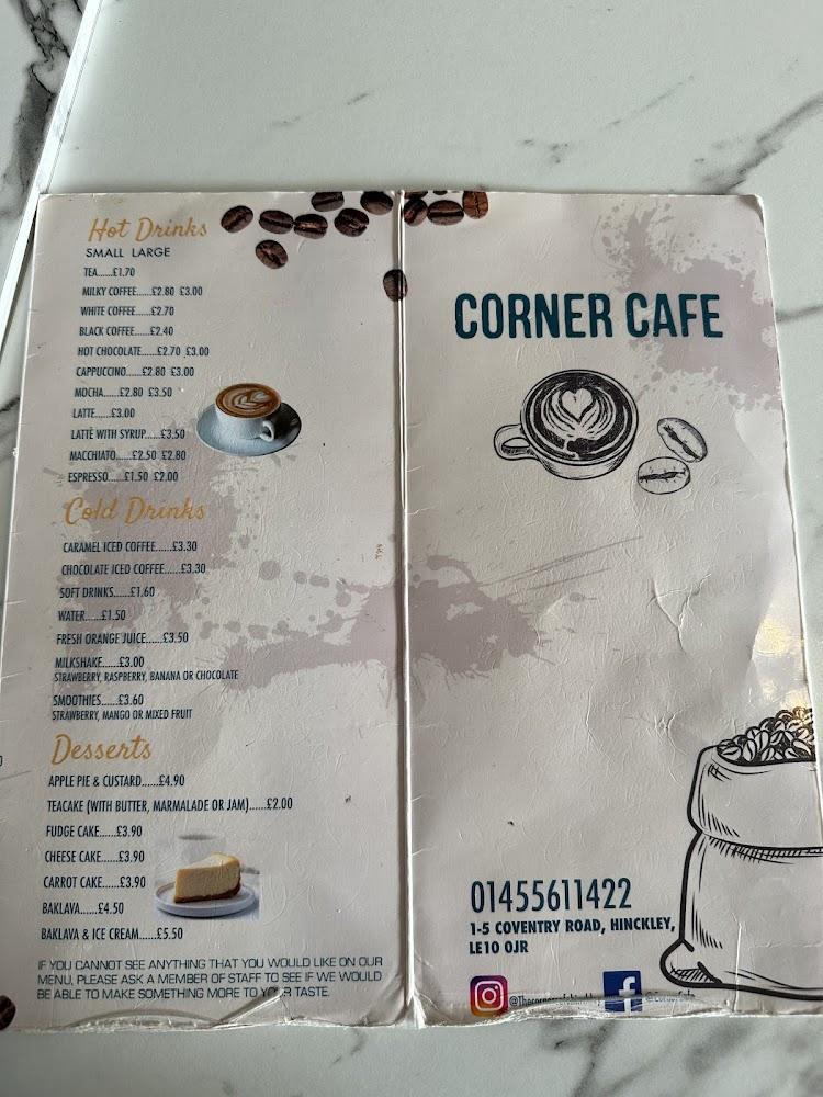 The Corner Cafe sits conveniently on Coventry Rd in Hinckley, making it a perfect spot for a laid-back meal. The cafe's welcoming vibe attracts a diverse crowd, including families, solo diners, and those looking for a quick bite or a place to work on their laptops. The establishment features both indoor and outdoor seating, ideal for enjoying a meal while soaking up the local community ambiance. The cafe prides itself on friendly service, offering a clean and inviting space with immaculate facilities, including toilets that guests appreciate. On Sundays, it becomes a bustling hotspot, particularly during breakfast hours, welcoming numerous visitors eager for a fulfilling meal to start their day right. The menu is designed to cater to everyone, providing a delightful mix of options that help bridge different tastes and preferences.